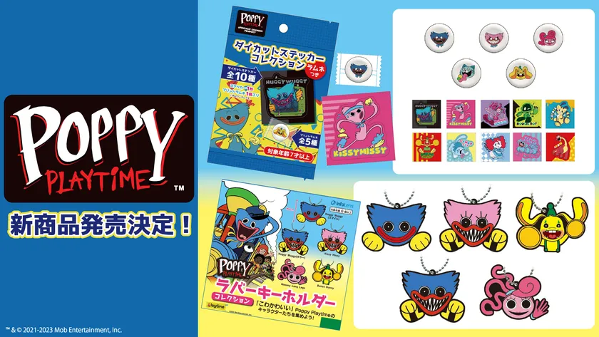 ゲーム関連商品を輸入・製造販売するインフォレンズ株式会社(本社:東京都中央区、代表取締役CEO:安川 洋)は、話題沸騰中のホラーゲーム『Poppy Playtime』のカプセルトイ「ラバーキーホルダーコレクション」を2023年11月中旬より順次発売開始、また、食玩ステッカー「ダイカットステッカーコレクション ラムネつき」を2024年2月6日(火)より発売することを発表します。