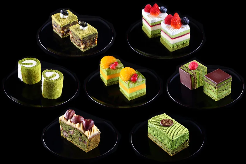 『宇治抹茶スイーツおせち』は、伊藤久右衛門 宇治本店に併設された宇治菓子工房にて、抹茶パティシエがひとつひとつ手づくりするため、ご用意できる数は50個限り。2015年のスイーツコンテストで優勝した「宇治抹茶アムール・ド・ミカン」、ファイナリストに入賞した「宇治抹茶ロールケーキ」をはじめ、過去オンラインショップにて限定販売された「宇治抹茶エンガディナー」「宇治抹茶シャンパーニュ」「贅沢渋皮栗の宇治抹茶キャトルカール」「宇治抹茶デリスフロマージュ」「宇治抹茶クラシックガトーショコラ」等、全7種の独創的な宇治抹茶スイーツを詰め合わせました。