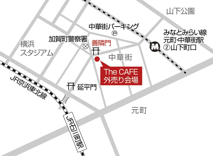場所は中華街のランドマークである「善隣門」となりの「聘珍茶寮ビル」1階「The CAFE(ザ カフェ)」。