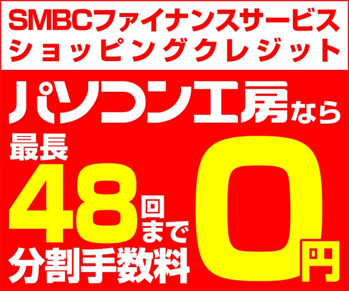 WEBでお申込できる便利なショッピングローン!SMBCファイナンスサービス ショッピングクレジットご利用のお客様に、最長48回まで分割支払い手数料をパソコン工房が負担します!欲しかった商品を自分のペースでご購入いただけます、ぜひご利用ください。