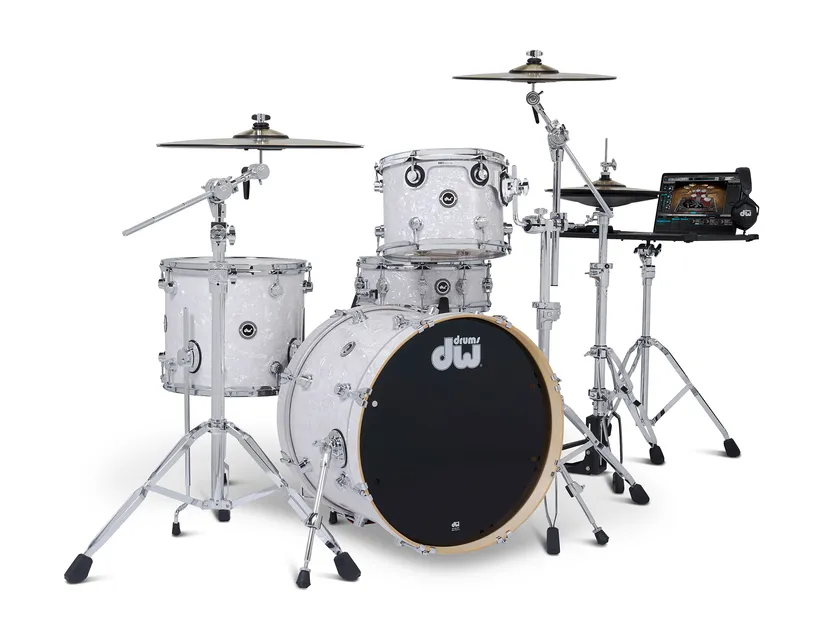 ハードウェアはドラマーから信頼の厚い「DW 5000シリーズ」で構成。シンバルには、チョーク奏法も可能な3ゾーン(ボウ/ベル/エッジ)、360度センサーを内蔵したDW製メタル・シンバルを採用。打感とドラムとしての存在感を兼ね備えています。(※)