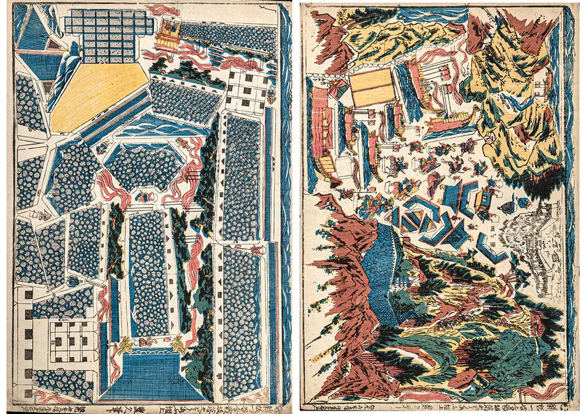 二枚で鵯越の坂落しで有名な一ノ谷合戦の様子を作り上げるため、人物などは小さく、坂落しの場面も小さすぎてよくわからないのが残念ですが、完成すると楽しいものです。