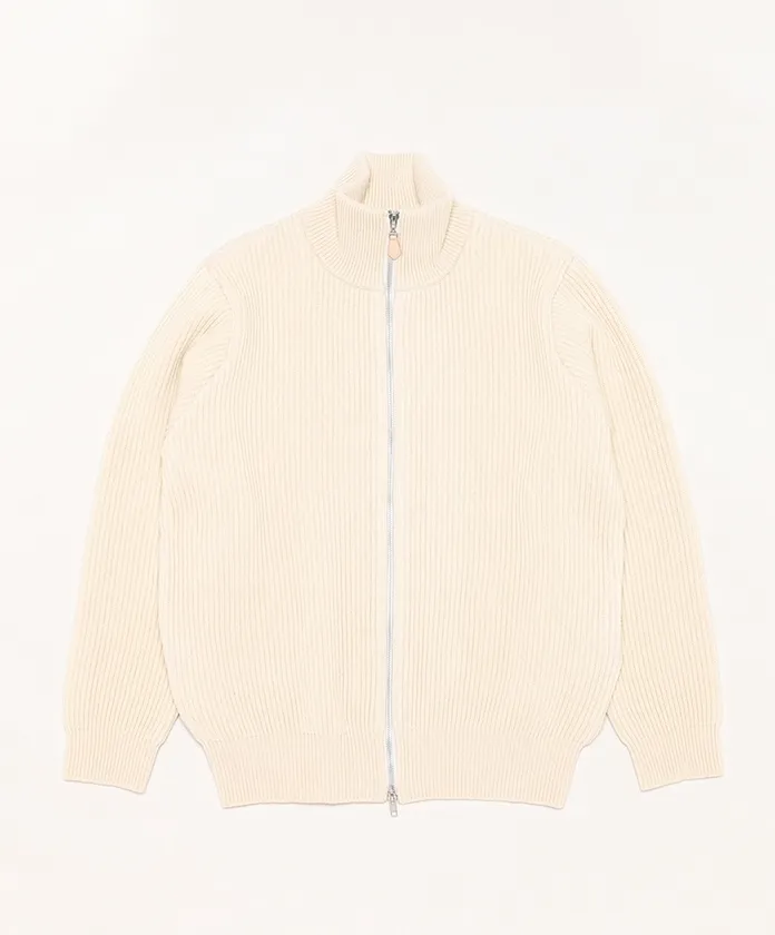 今回の企画では、Yonetomi/ヨネトミの主力製品であるリジットカシミヤ(未洗い、未染色のカシミヤ糸を使用した、洗うことが難しいとされる従来のカシミヤニットの概念を覆したオリジナル生地。)にアレンジを加え、洗うことが可能な両畦組織の編地を開発。1年の試行錯誤を経て、縮まず洗うことができる絶妙なバランスを伸縮性のある畦組織にて実現をしました。高い保温性と、両畦編みならではのフィット感、カシミヤの滑らかな肌触りが特徴で、カットソーの上に羽織ることができるアウターとして、そのフィット感を活かしてインナーとしても着用ができる一枚に仕上がりました。