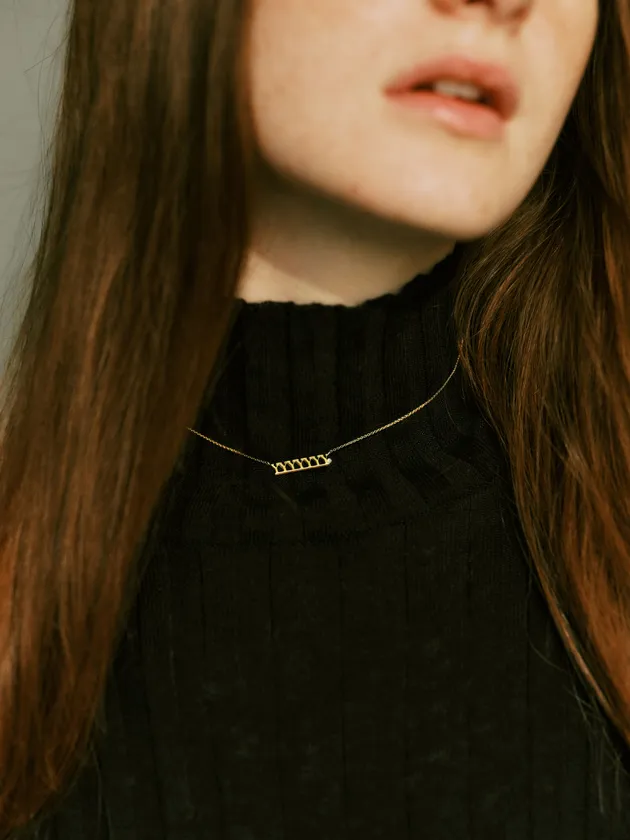YANUKのシグネチャーアイコンともなっている「YYYYY」をモチーフにしたロゴネックレス。デコルテラインでさりげなくキラリと光るロゴデザインは控えめな主張でノーブルなムードを作ってくれます。ポイントで煌めくダイヤモンドがポイントに。首元に合わせて長さの調整も可能です。
