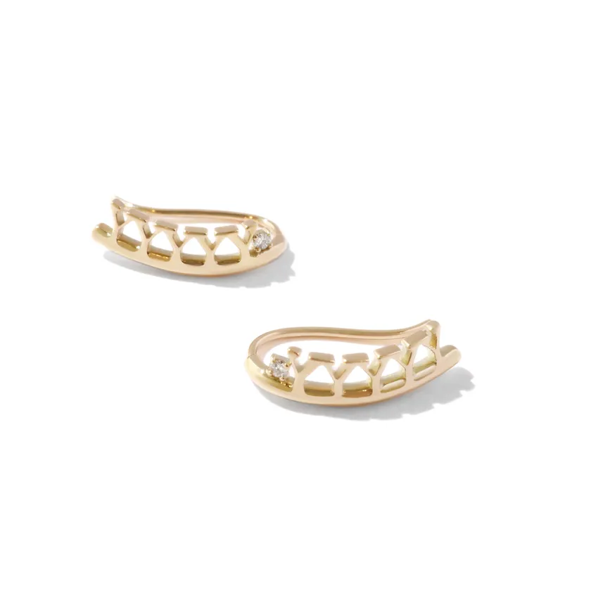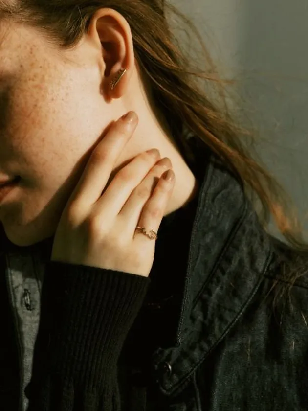 耳たぶのうえにそっと沿うようにつけるデザインは、コンテンポラリーな雰囲気を醸し出してくれます。