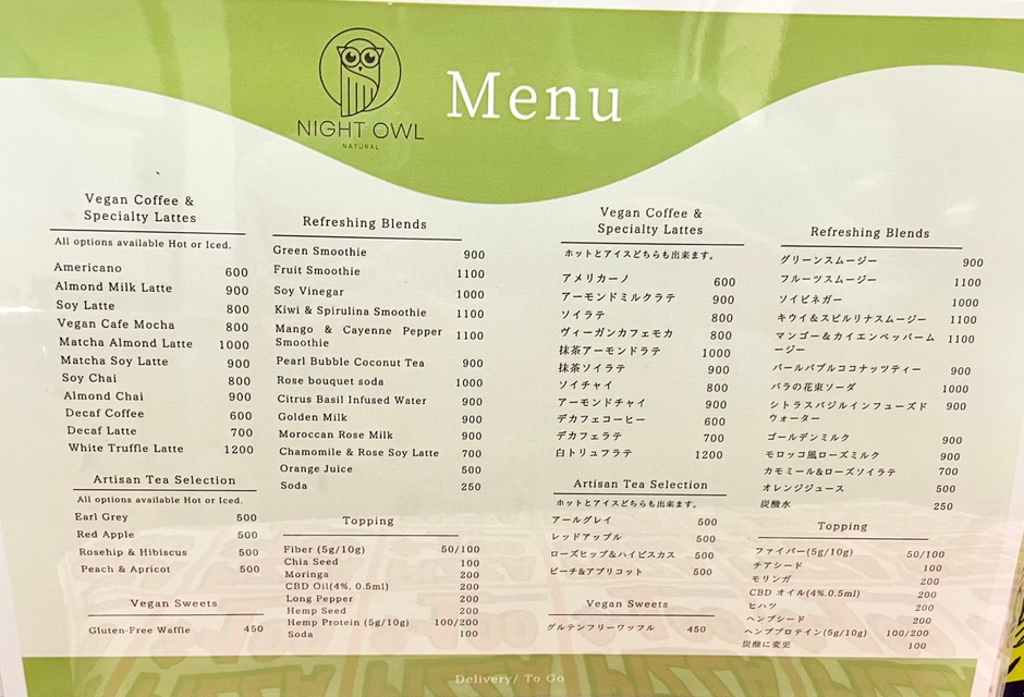 麻布十番【深夜の健康】ヴィーガン&無添加夜カフェ「Night Owl/ナイトオウル」がオープン