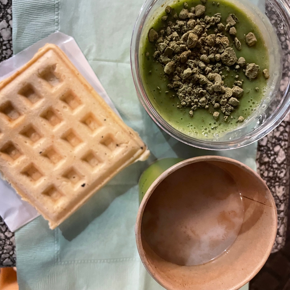 グルテンフリーワッフル:予想以上のサイズで、新食感を提供。卵や白砂糖を使用せず佐藤をてんさい糖を使用。