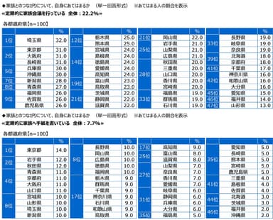 ・「定期的に家族会議を行っている」 全体の22%、都道府県別の1位は埼玉県