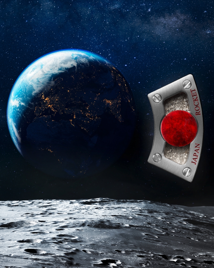 ロケットのパーツと月の隕石が日の丸デザインに