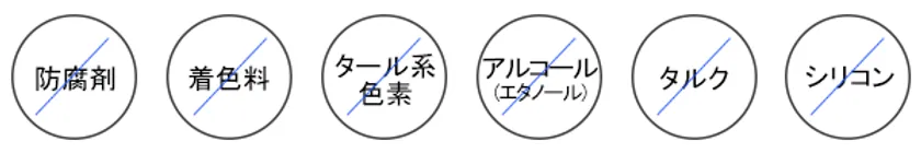 着色料、防腐剤、タール系色素、アルコール(エタノール無添加)、タルク、シリコン