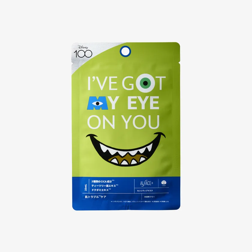 BOXに入っている6種類のフェイスマスクのパッケージにも、ミッキーマウスやミニーマウス、くまのプーさんやスティッチなど人気のディズニーキャラクターと、モンスターズ・インクのマイク・ワゾウスキやサリーなどのピクサーキャラクターがそれぞれ描かれています。