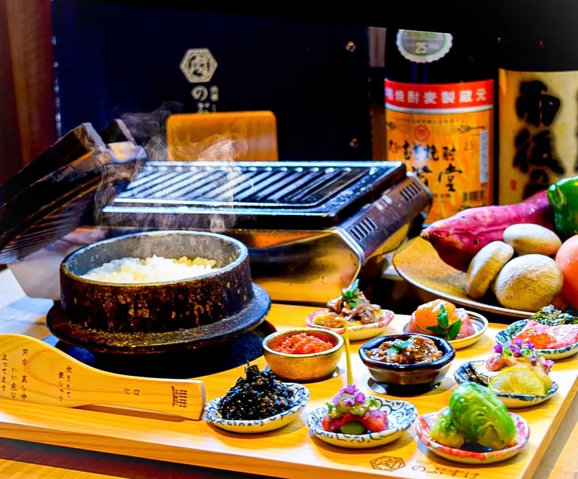 人気の秘密は、3種類の米銘柄(広島東城産こしひかり、青天の霹靂、雪若丸)と炊き方(かため・普通・柔らかめ)を自分好みに選ぶことができ、注文を受けてから1~2人前の専用土鍋で20分かけて炊き上げる手間のかけ方にあります。