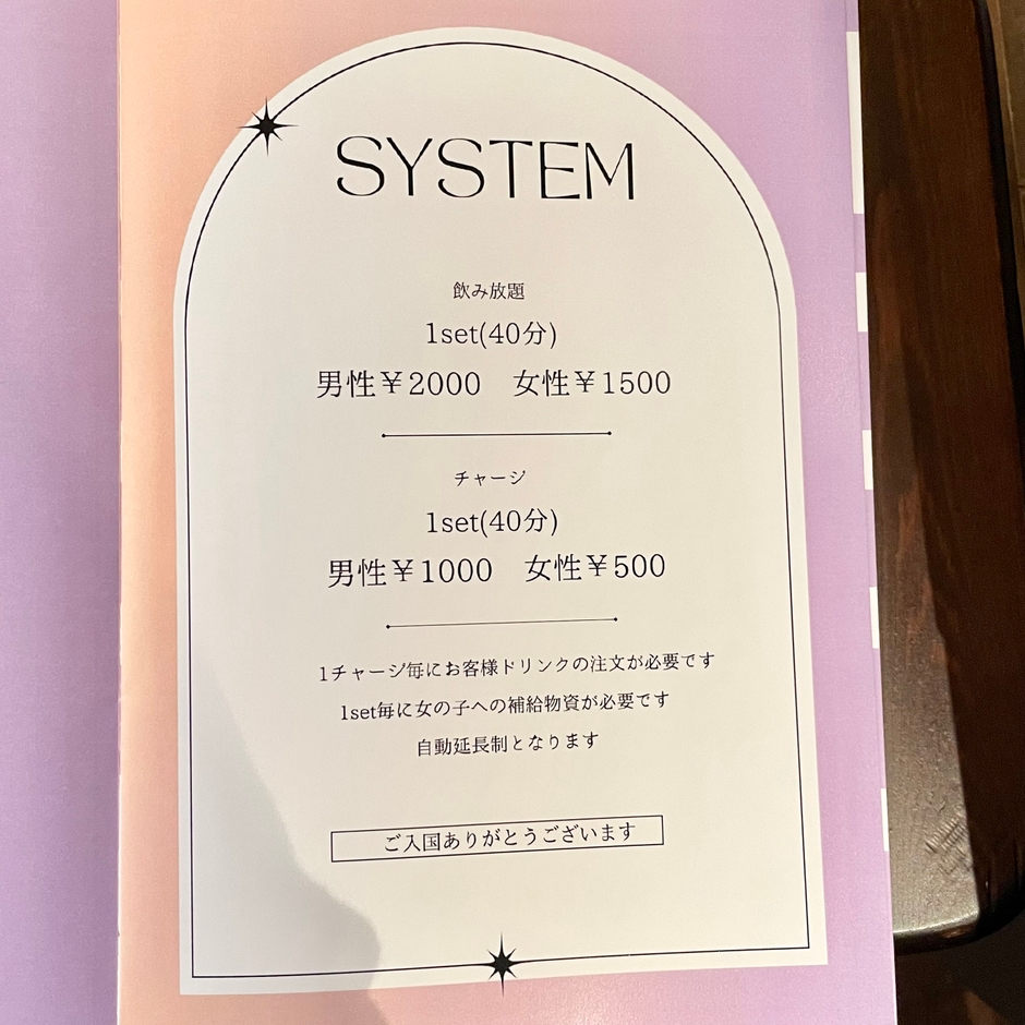 飲み放題プラン: 40分 2000円・タロット占い 2000円など