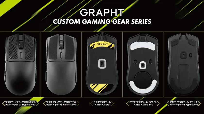 MSY株式会社(本社:東京都渋谷区、代表取締役:秋山 昌也)が展開するゲーミングカルチャーをユーザー目線で考えるブランドGRAPHTは、ゲーム環境を一段上に向上させるゲーマー向けアイテム「CUSTOM GAMING GEAR SERIES」から、Razer(TM)のゲーミングマウス「Razer Viper V3 HyperSpeed」対応のマウスグリップテープとマウスソール、「Razer Cobra」、「Razer Cobra Pro」、Logicool Gのゲーミングマウス「Logicool G PRO X SUPERLIGHT 2」に対応したマウスソールをリリースします。