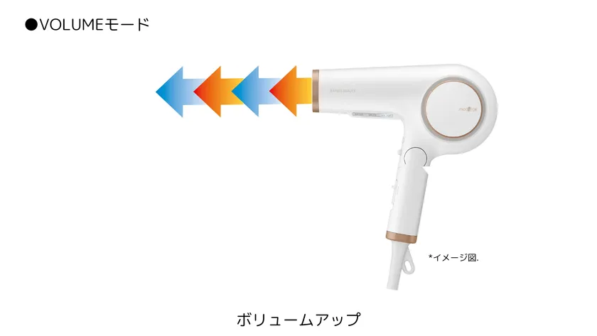 付属のセットノズルでブローすれば、カンタンにエアリーなボリュームアップスタイルに仕上がります。