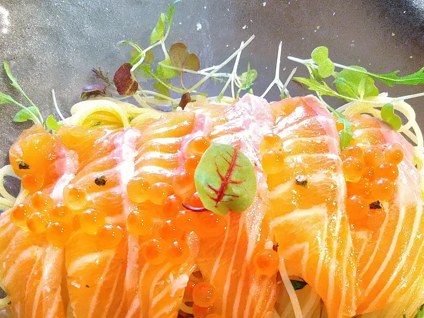 サーモンキャンディとはスモークサーモンにメープルシロップを絡めたもので、甘辛い味のカナダの郷土料理のひとつ。大変人気の高級おつまみですが、日本人には「パサパサでイマイチ」との声も…。塩でしめた生サーモンに燻製メープルシロップソースをかければ、日本人好みのみずみずしいサーモンキャンディが味わえます。