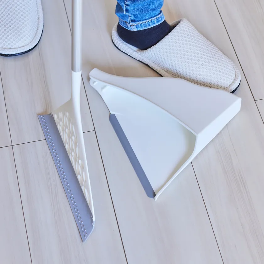 ラバーワイパー『Luotta(ルオッタ)』の一番の特徴は、なんといっても「掃き残し」の少なさです。それを可能にするのが、柔軟なワイパー部と先端のエッジ。ワイパー部のしなりと先端エッジの効果で床とのスキマがなくなり細かなチリやホコリの掃き残しを防いでくれます。