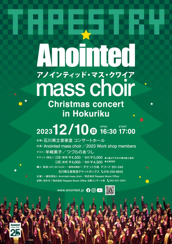 今年創立25年目を迎えたゴスペルグループ「一般社団法人Anointed mass choir(アノインティッド・マス・クワイア)」は、2023年12月10日(日)、石川県立音楽堂コンサートホールにてクリスマスコンサートを開催いたします。