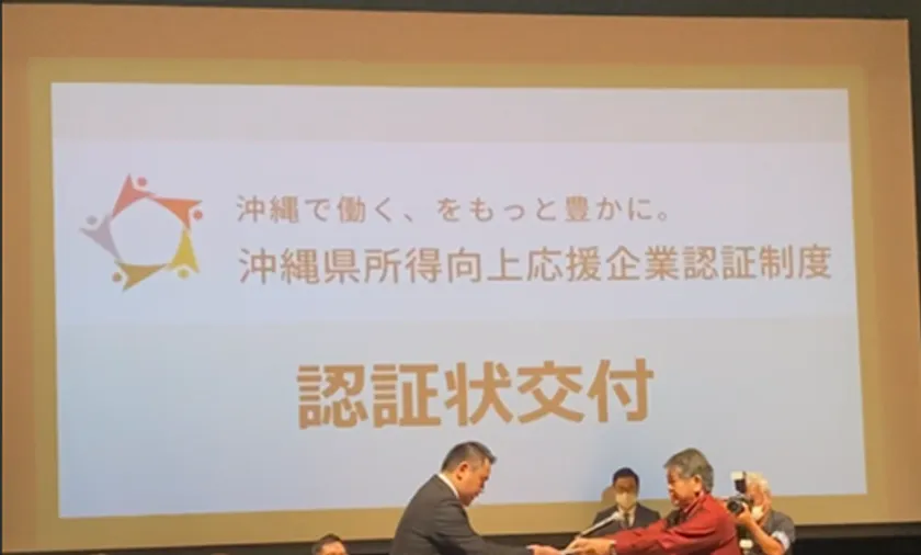 そのため、本県では企業の稼ぐ力の向上を図るとともに、稼いだ企業所得を従業員に還元し、給与所得向上等について積極的に取り組む企業を『沖縄県所得向上応援企業』として認証登録する制度を創設し、県民をはじめとする内外の関係者に対し、積極的にPRいたします。(沖縄県公式HPより)
