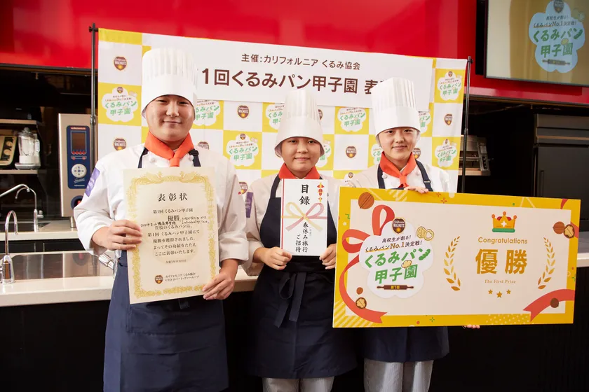 今回の受賞結果を受け、Individuality Pieceチームは「私たちは、くるみパン甲子園に出場することでパンを作ることの楽しさを感じることが出来ました。指導して頂いた先生に感謝を伝えると共に、この経験をこれからの実習授業や自分たちの将来につなげてがんばっていきたいと思います。」とコメントしています。優勝チームには盾・賞状が贈呈されるととともに、来年の春休み旅行が賞典として授与されます。