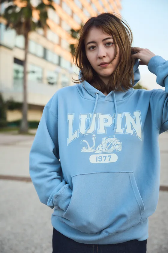 TVシリーズPART2より、ルパン三世といえば!なアイキャッチを使用したプルオーバーパーカー。「LUPIN」の文字をカレッジロゴ風にデザインしました。
