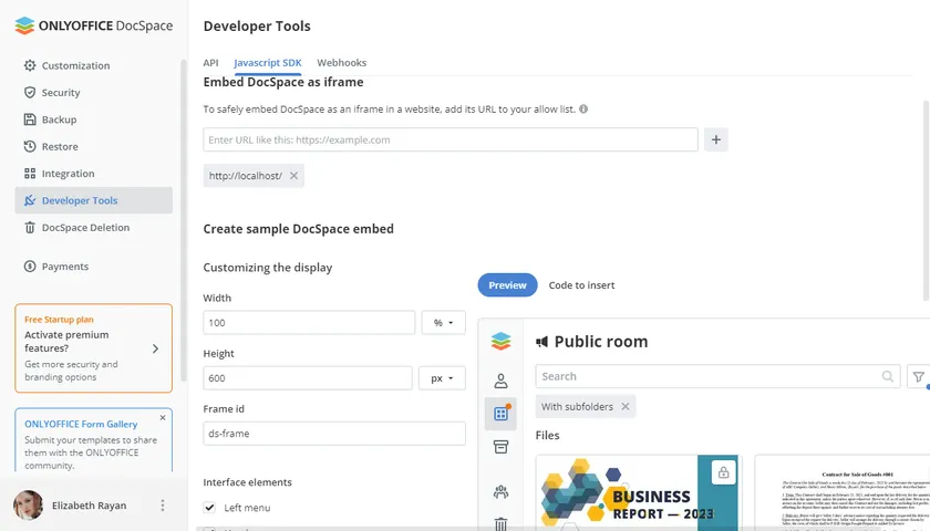 システムプラグインを有効化するだけでなく、プラグインSDKと利用可能なコードサンプルを使用して、開発者が独自のプラグインを構築し、DocSpaceに追加することが可能になりました。