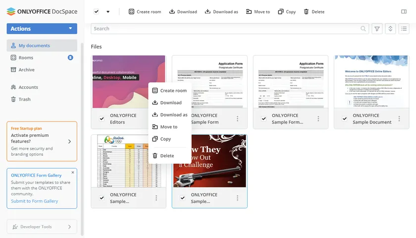 ONLYOFFICE DocSpace 2.0では、個人ファイルやフォルダを元にルームを作成する機能が追加されました。フォルダが1つだけ選択された場合、その内容は作成されたルームにコピーされます。
