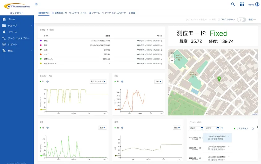 Mobile GNSS(※3)で得たセンチメートル精度の正確な位置情報を使用し、IoT Connect Gateway(※4)、Things Cloud(R)(※5)を用いて除雪車の位置データや操作データの蓄積及び可視化を行うことで、操作のフィードバックによる操作性向上のみならず、自動運転の実現に向け必要な機械学習用のデータ収集を行いました。