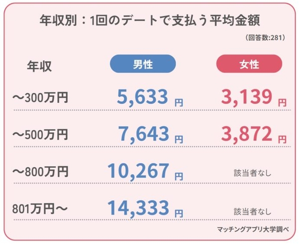 年収が高い人ほどデート代も高い!