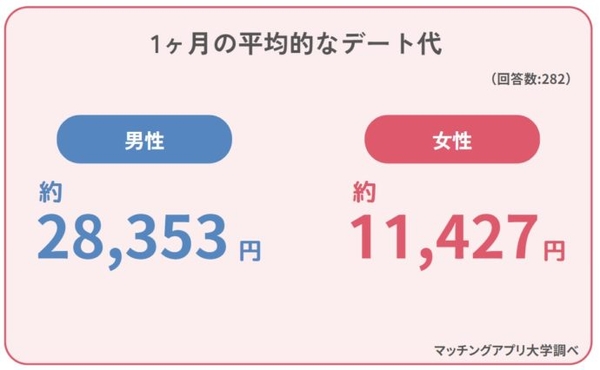 月のデート回数は3.4回、男性が1ヶ月に支払うデート代は28,353円に!