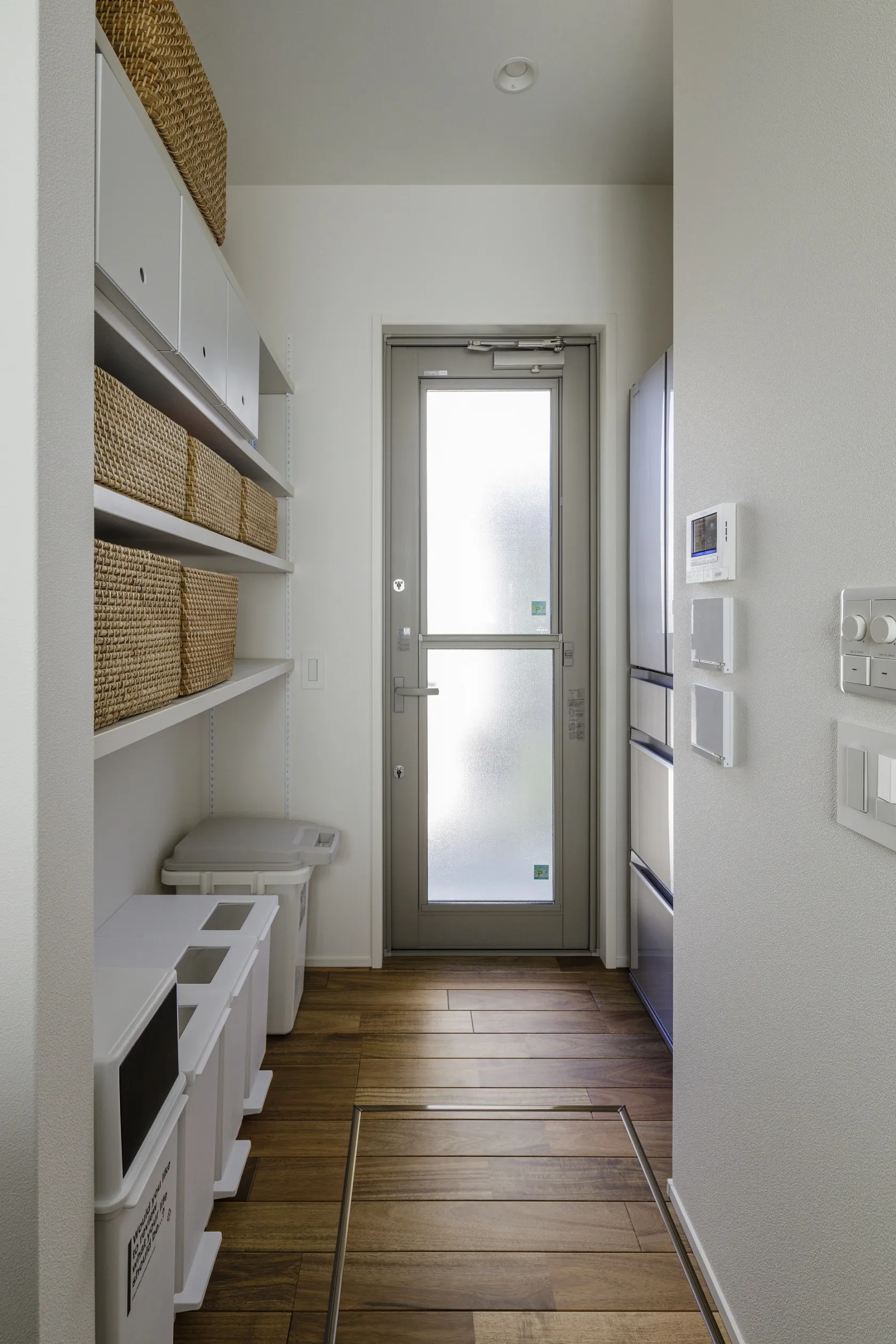 分別ゴミ箱もキッチンクローク内に。北側には勝手口があるため、そのままゴミを出せる動線です。