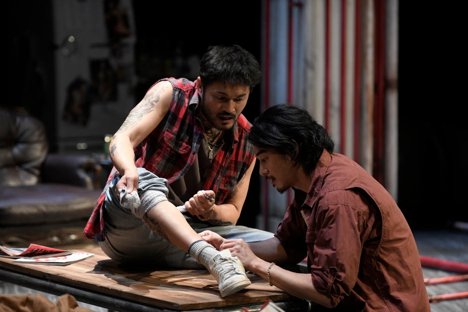バグ役の阿部亮平は、粗暴さが観客を惹きつける。屈強な肉体と野蛮な巻き舌は、まさにゴロツキそのもの。常に苛立ちを身にまとい、場に殺気をもたらす一方、何とも言えない愛嬌があり、乱暴者のはずなのに妙な親近感を抱かせる。圧巻は、終盤の車中シーン。どこで爆発するかわからないバグの怒りと狂気を表情だけで見せつけ、観客の視線を釘付けにした。