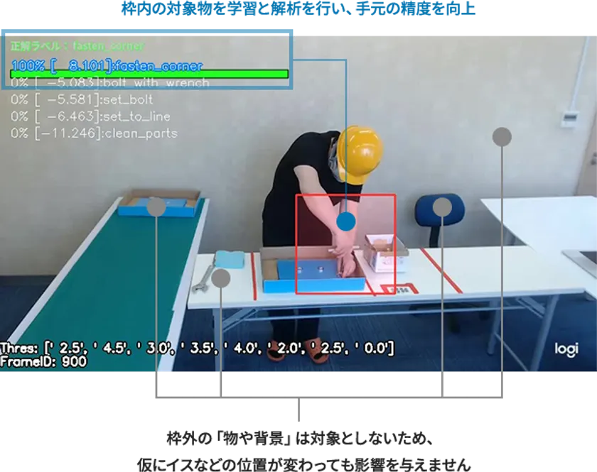 「手元切り抜き」モードの追加機能で、手元を注視して学習と解析を行います。
