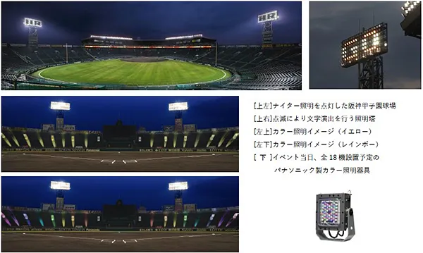 ナイター照明や外野スタンドを照らす 本イベント限定のカラー照明を使った演出も。