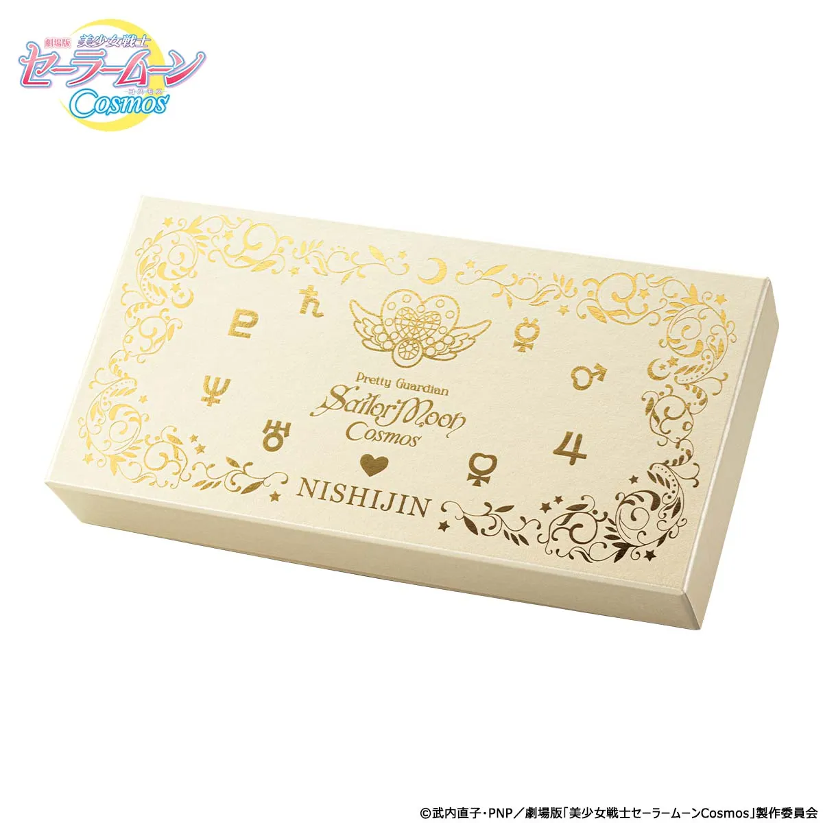 エターナル・ムーン・アーティクルとセーラー戦士の守護星マークの箔押しを施した、特製ボックスに収めてお届けします。
