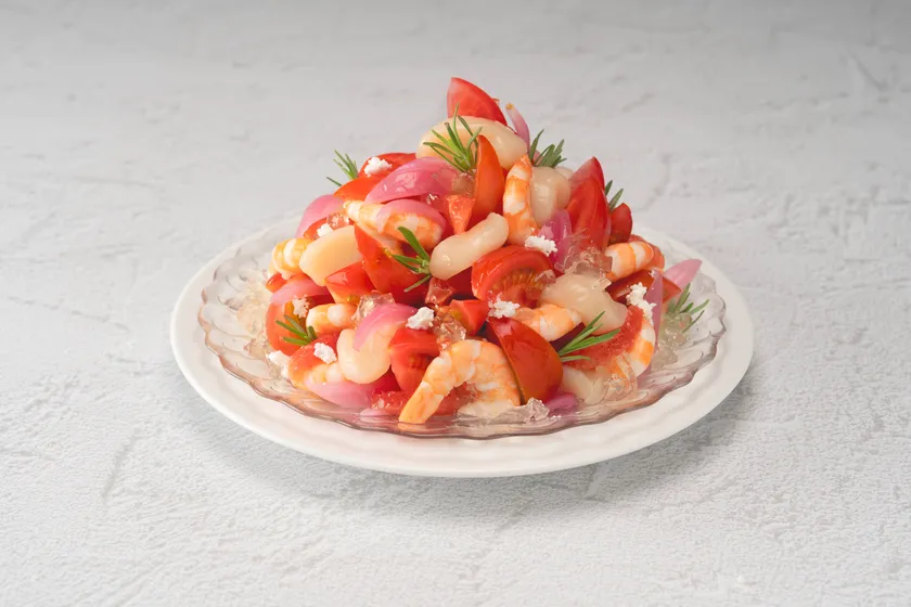 お肉の商品だけでなく、鯛や海老、帆立、サーモンを使った豪華なサイドディッシュも充実しております。新商品の『海老と帆立の華やかマリネ』や『サーモントラウトと苺のマリネ~つぶつぶ苺ドレッシング~』は見た目も美しく、クリスマスの食卓が華やぐ商品です。また、人気の高いカルパッチョ風サラダも、いくらをトッピングした特別バージョンとして登場いたします。