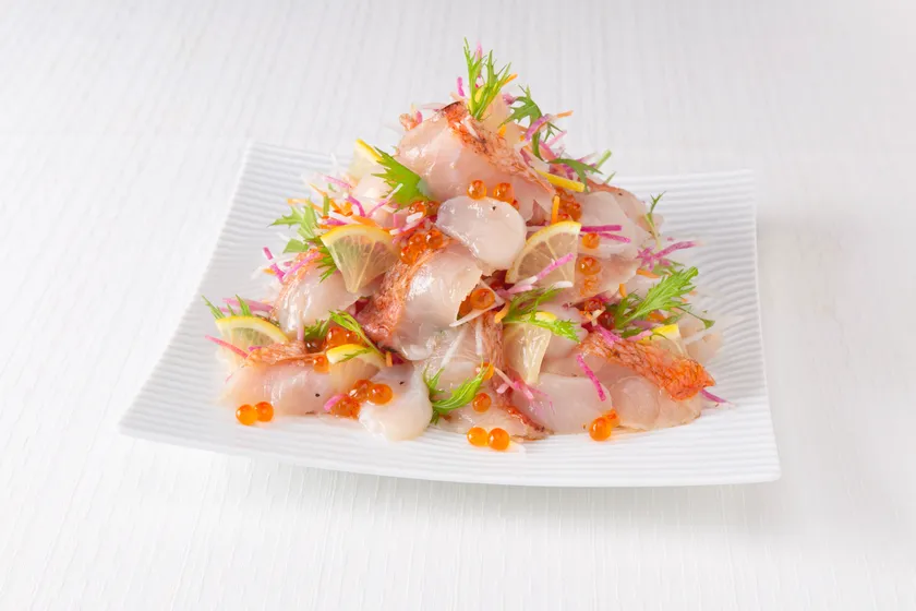 『金目鯛・帆立・いくらのご馳走カルパッチョ風サラダ』