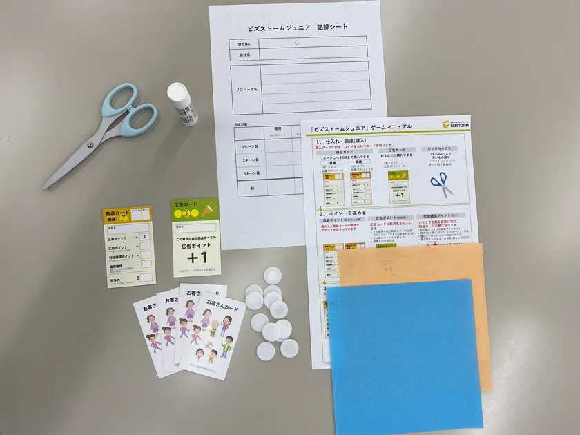 本セミナーでは、しごとのしくみを体験する経営ゲーム「ビズストームジュニア」を体験していただくことができます。