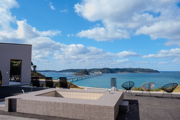 一歩Villaのテラスに出れば、エメラルドグリーンの海と角島大橋が視界いっぱいに広がります。360度パノラマでの絶景はSNSの投稿用にも最適。写真映えを重視する方々から高い評価をいただいています。