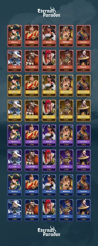 この戦士たちはゲーム内で最も重要なキャラクターの一部として、それぞれバックストーリーやスキルがあり、レア、エピック、レジェンダリー、エンシェントの4種類のレアリティが用意されています。