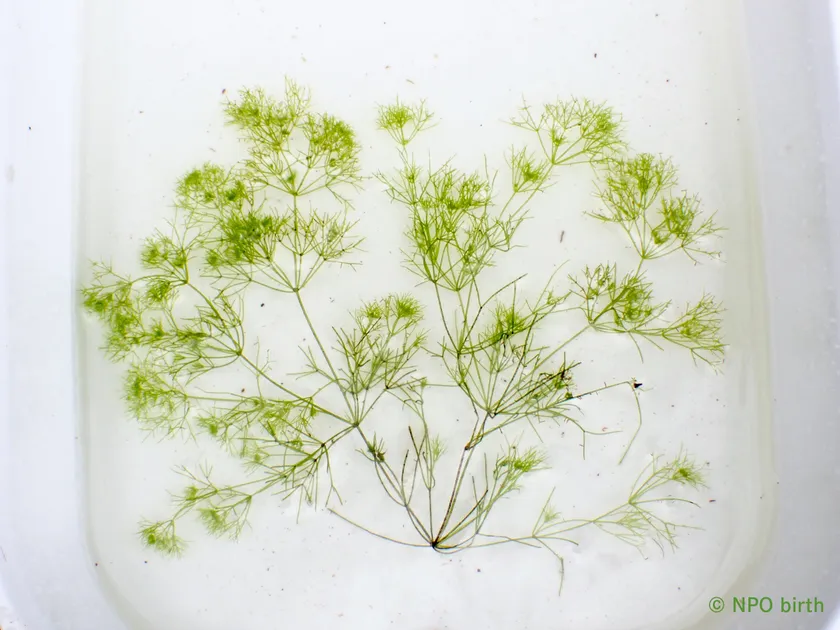 ヤナギスブタの他にも、狭山丘陵では初確認のミズオオバコ(東京都RDB2023:絶滅危惧IA類(CR))を発見することができました。さらに、狭山丘陵では確認記録が少ないサワトウガラシやフラスコモ属の一種が確認されています。