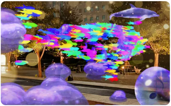 具体的には、イベント参加者は、本イベント専用アプリ(※3)をお手持ちのスマートフォン等にダウンロードすることにより、各スポットにて品川港南エリアにゆかりのあるXRコンテンツ(※4)をご覧いただけるほか、夜は品川シーズンテラスなどの一部エリアのイルミネーションとXRがコラボした体験型のXRコンテンツをお楽しみいただけます。さらに、各スポットに隠されたコンテンツを見つけると、限定ポイントが付与され、品川シーズンテラス内の一部飲食店舗にてご利用いただけます。