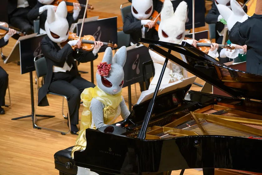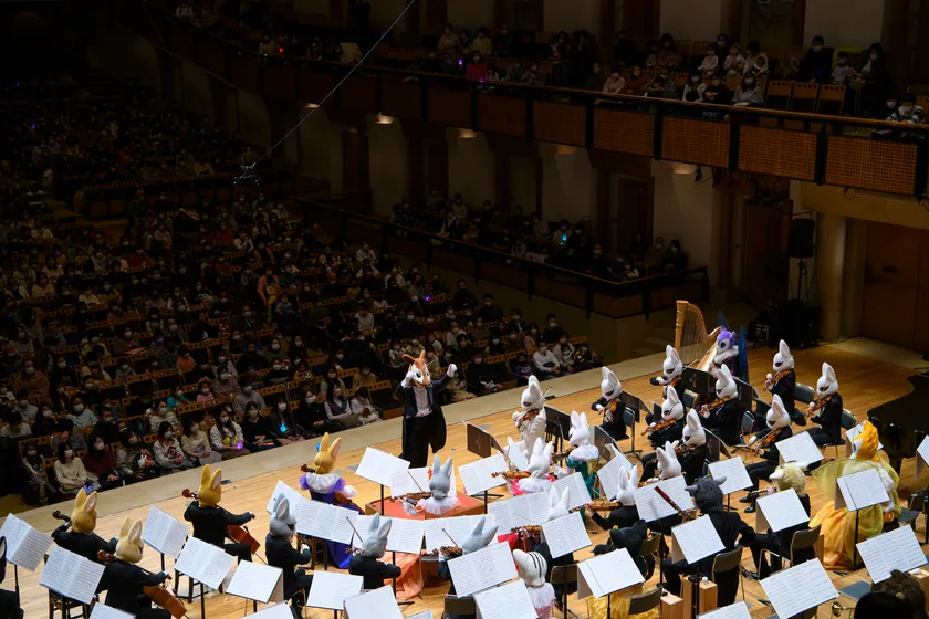 「弦うさぎ」(うさぎの弦楽四重奏)「サキソフォックス」(キツネのサックス四重奏)といった動物の仲間たちと行う、親子のためのコンサート「音楽の絵本」は、全国各地のホールで話題となり、海外公演も含め年間約150を数えます。2011年にはオーケストラ「ズーラシアンフィルハーモニー管弦楽団」を結成。これまでのコンサートから更に一歩踏み出し、慣れ親しんだ音楽をより交響的に紡ぐ「シンフォニック童謡」をテーマに展開。子どもたちのクラシック音楽への興味を一層高めています。