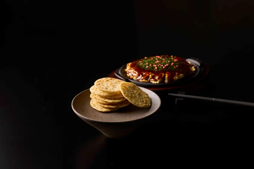 2020年12月に「うまみせんべい」を発売。2021年8月に「うまみせんべい紅生姜味」を発売。2022年9月に「うまみせんべいうにほたて味」を発売。そして今回は第4弾として、大阪といえばお好み焼き!と誰からも愛される大阪の味として「お好み焼き味」を発売いたします。お好み焼きソースを基本に、トリュフ、牡蠣の風味で食べた瞬間にリッチな気分になるおせんべいを目指し、何度も試作を重ね完成しました。