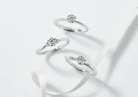 はじめにご購入いただくリングは、多くの方に好まれる「シリウス」「フラネリー」「ヴィオラ」からお選びいただき、プラチナ製でご用意します。中央に留めるダイヤモンドとご一緒にお選びください。