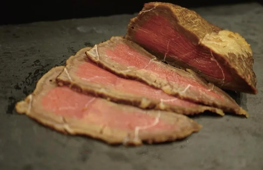 煮込み料理としてブロック肉として扱われるモモ肉。適度にサシが入っていて、口当たりも柔らかく、最もバランスが良いため、生ジャーキーとしての旨味と柔らかさが感じられます。どの部位か迷われる方はモモ肉をおススメします。