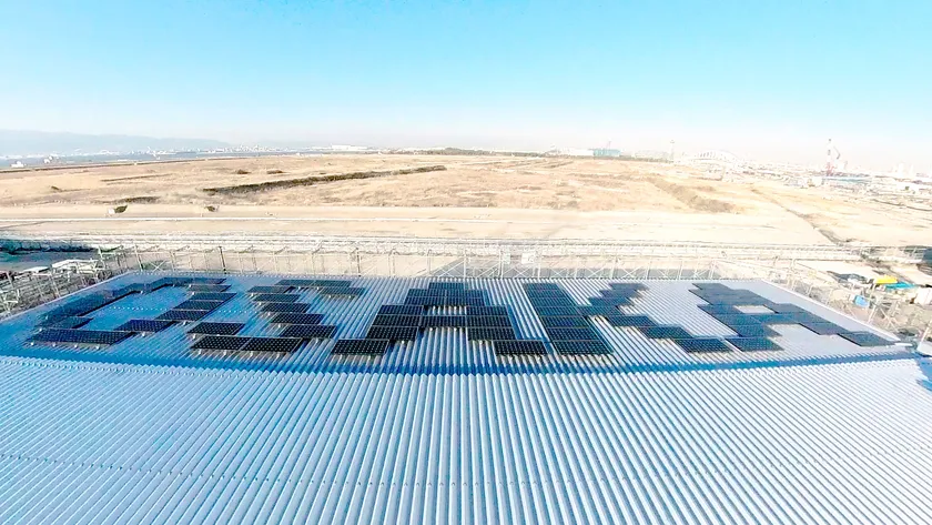 大阪・関西万博 大阪ヘルスケアパビリオンバックヤード棟」に 「OSAKA」の形に並べた“おもろい”太陽光発電システムを設置
