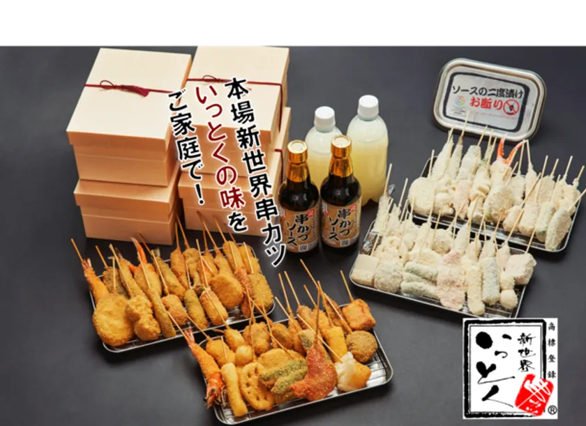 「大阪 新世界 串カツ いっとく」は、ご自宅でも揚げたての串カツを、さらに多くの方に楽しんでいただくために楽天市場にて体験キットへの販売をしております。販売する商品は「新世界セット20本盛り 4,980円(税込)」「難波セット20本盛り 4,980円(税込)」、「大阪セット40本盛り 8,980円(税込)」等、他にも魅力的な商品がラインナップされております。