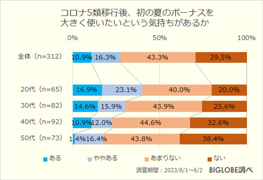 コロナ5類移行後、初の夏のボーナスを大きく使いたいという気持ちがあるか