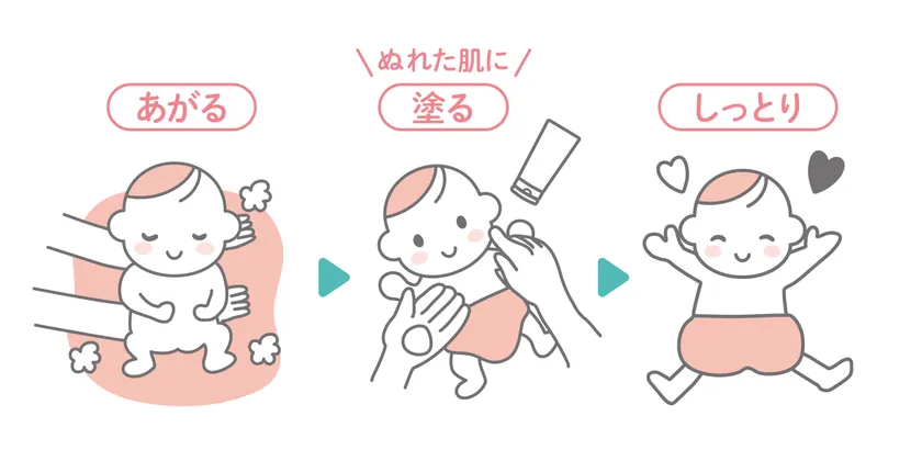 お風呂から上がったら濡れた肌にクリームを塗るだけ。濡れた肌でも肌馴染みがよく、お風呂場で完結するので乾燥する隙を与えずに保湿ケアをすることができます。後回しにしがちなママ・パパのスキンケアもお風呂場でお子様と一緒に楽しめながら使えます。また、浴室でケアまで完結するので時短になり、ワンオペお風呂の強い味方に!